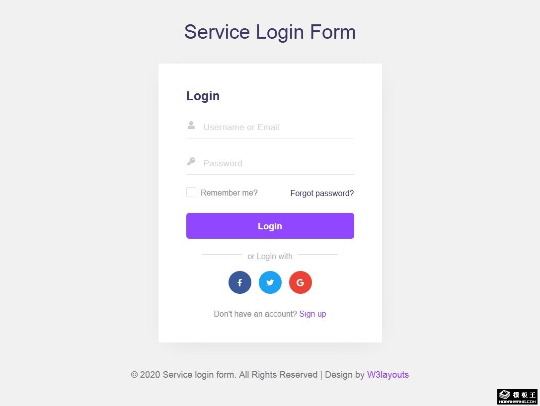 简洁服务登录表单响应式网页模板。