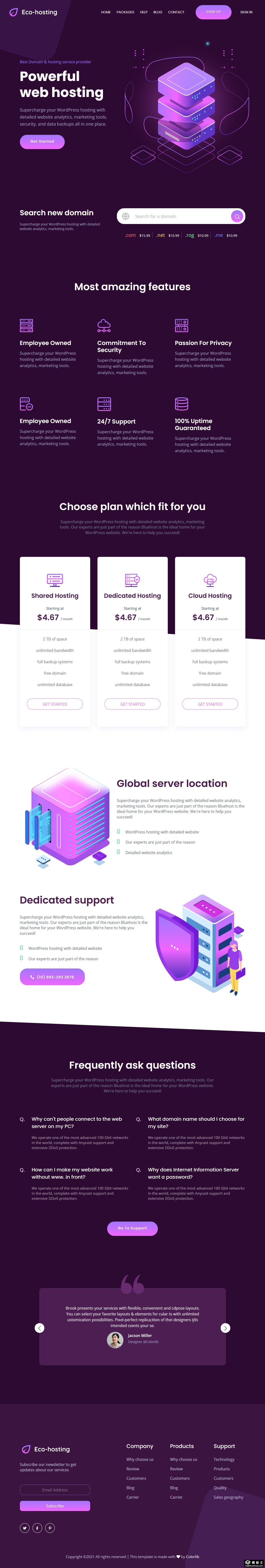 云数据托管服务响应式网页模板。