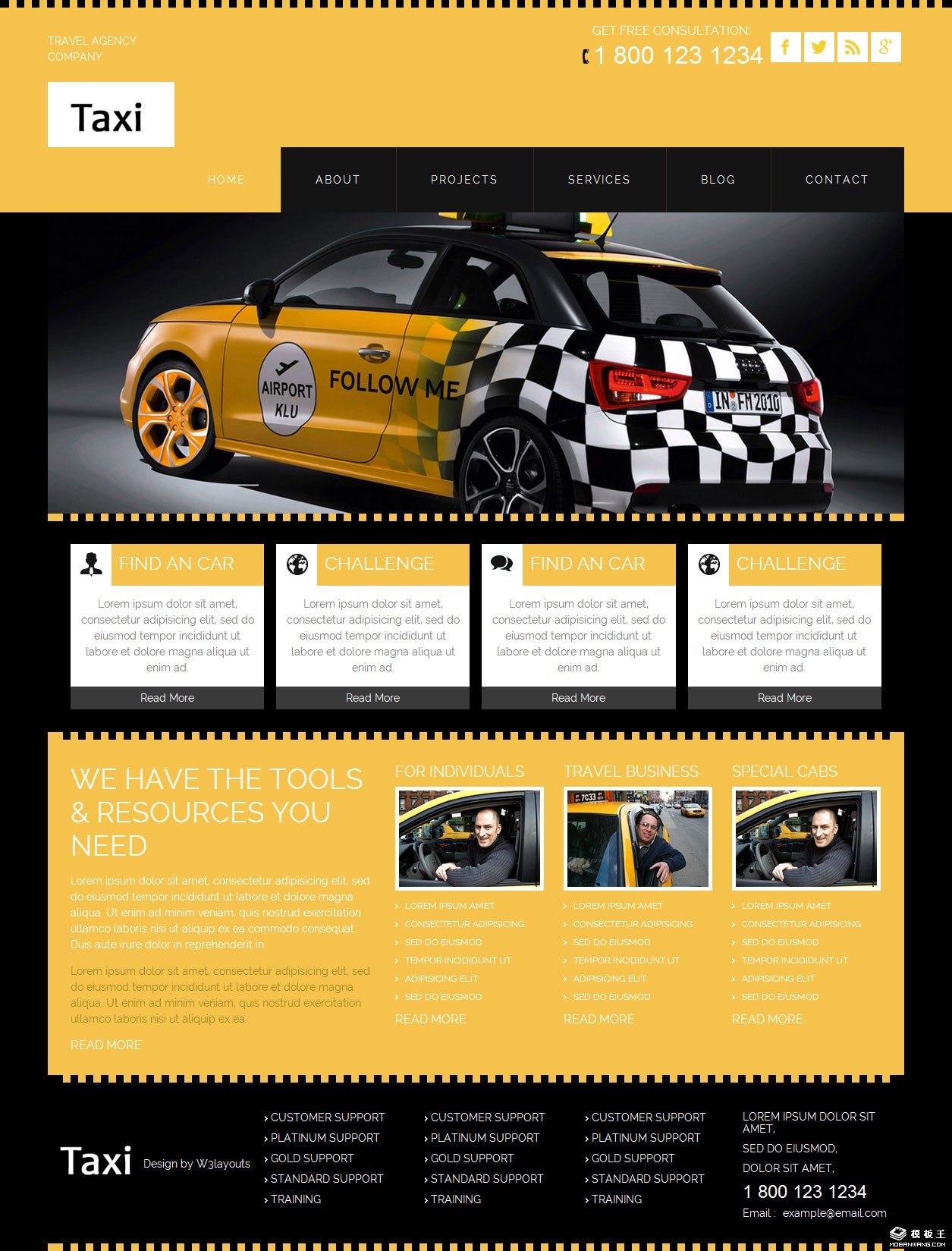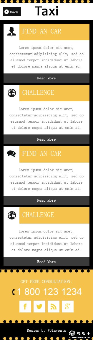 黄色出租车公司网页模板。