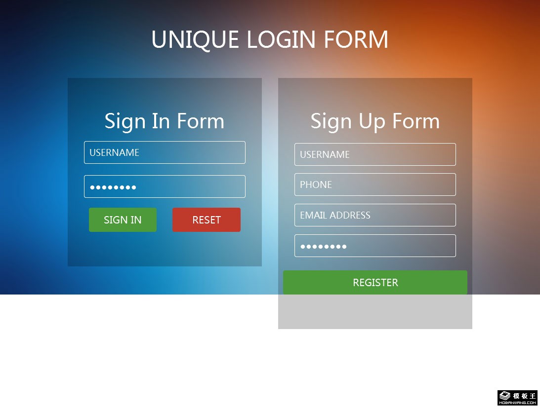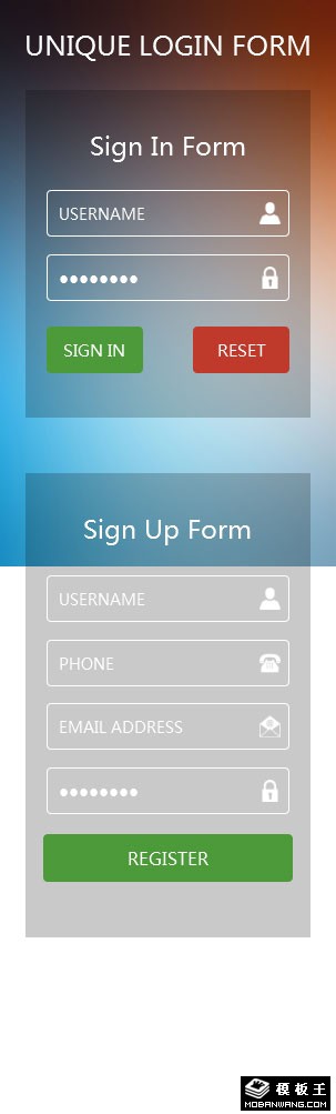 彩色注册登录表单响应式网页模板。