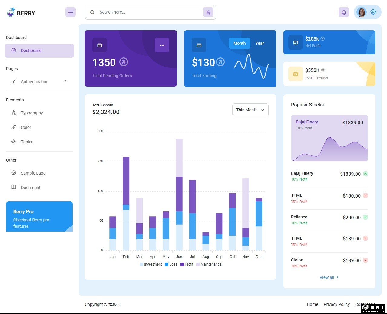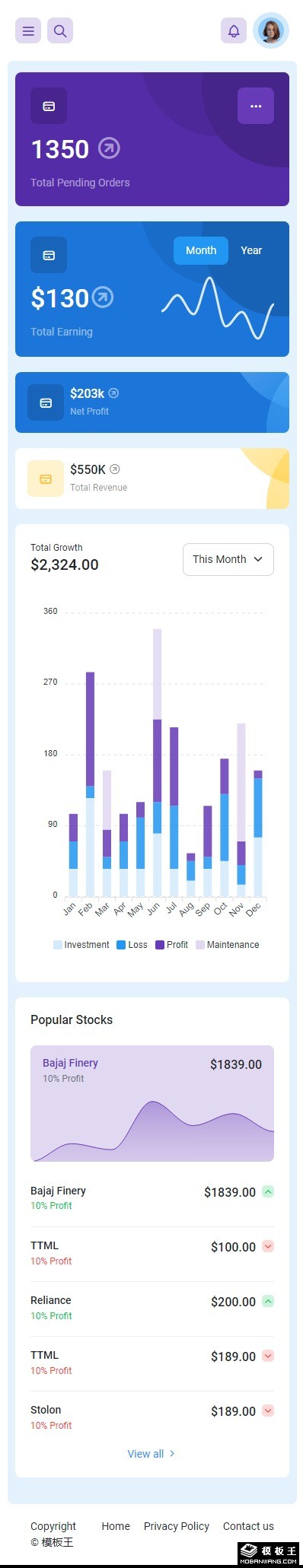 订单收益数据管理网页模板。