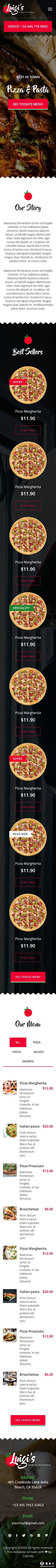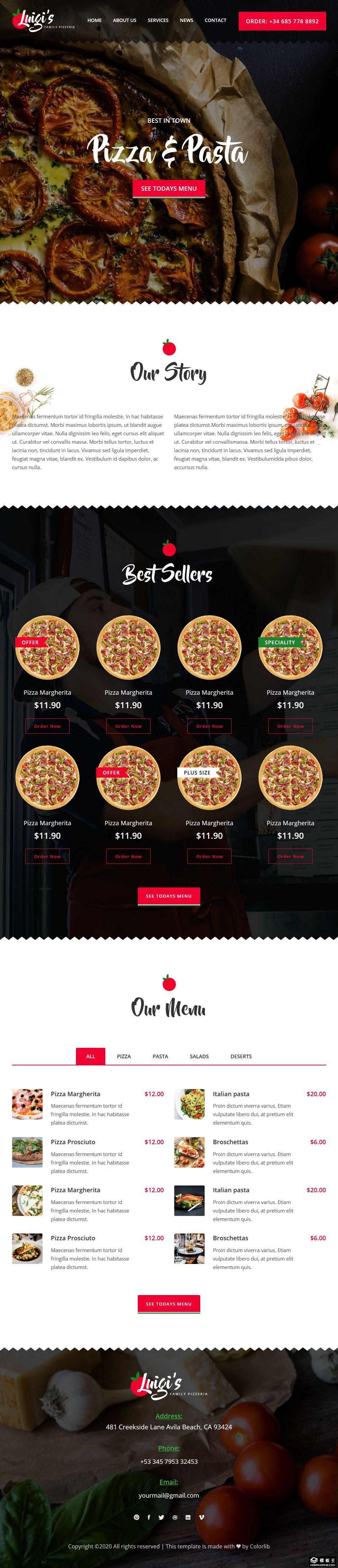 披萨美食展示响应式网站模板。