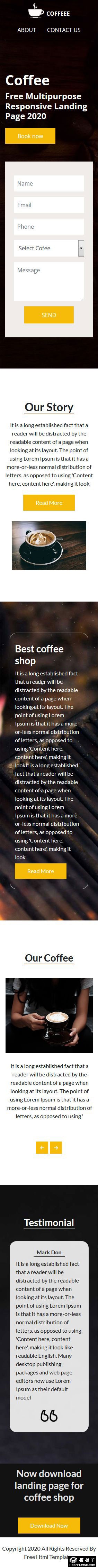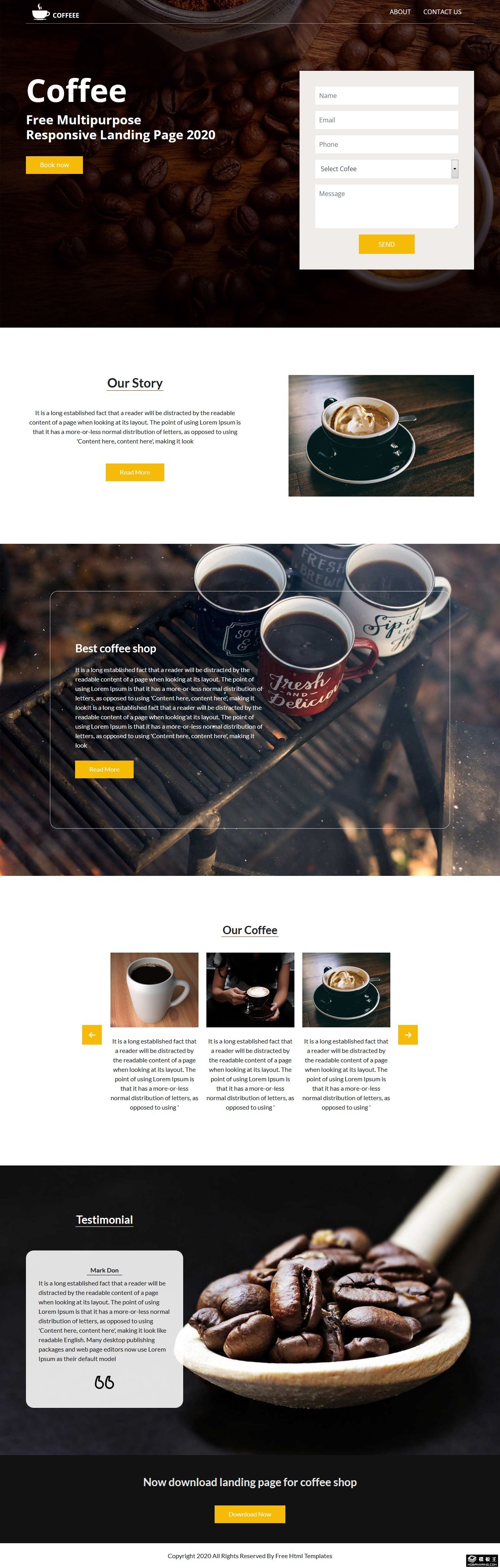 咖啡豆品牌展示响应式网页模板。