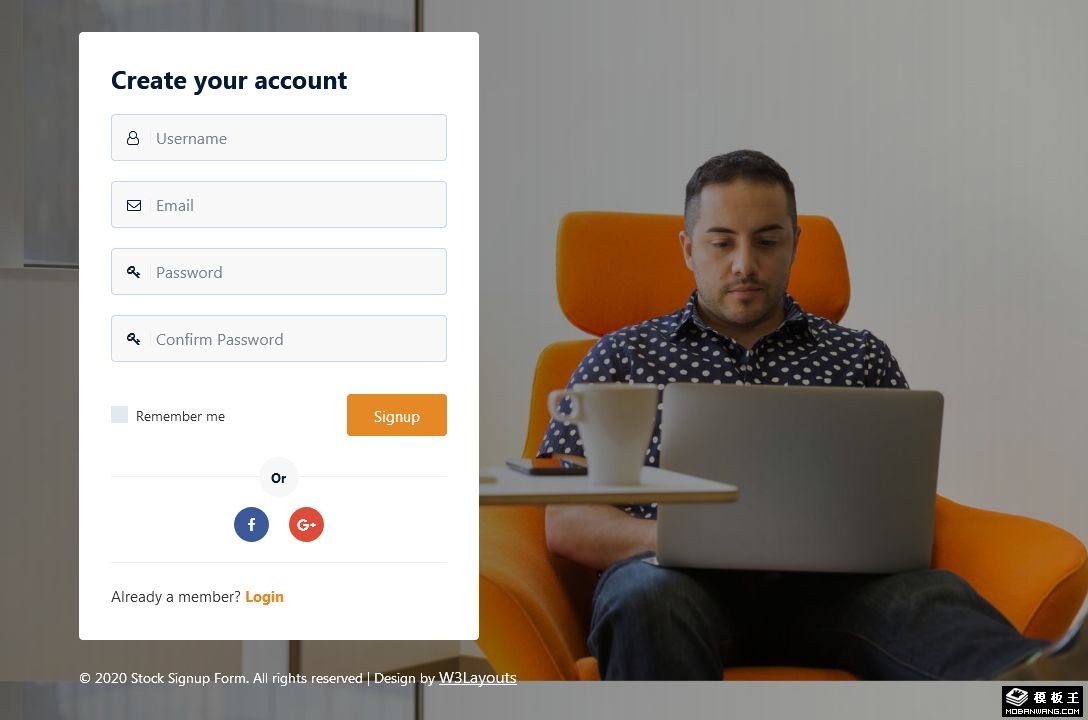 股票金融登录框响应式网页模板。