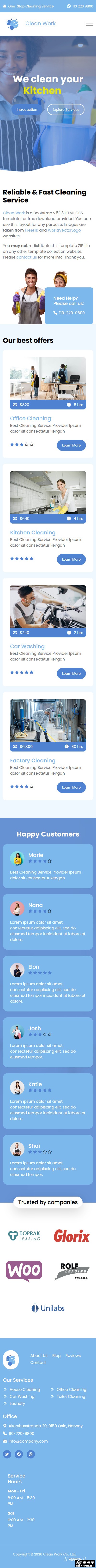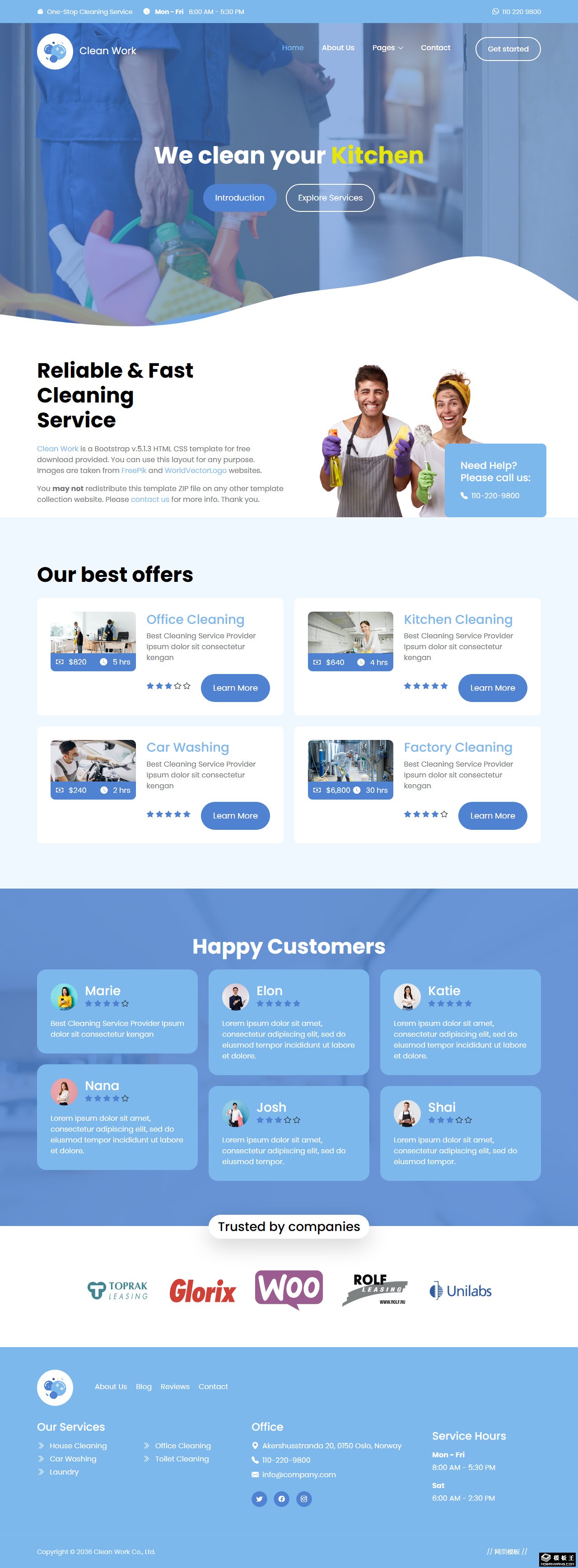 天蓝清洁服务公司网页模板。