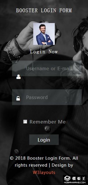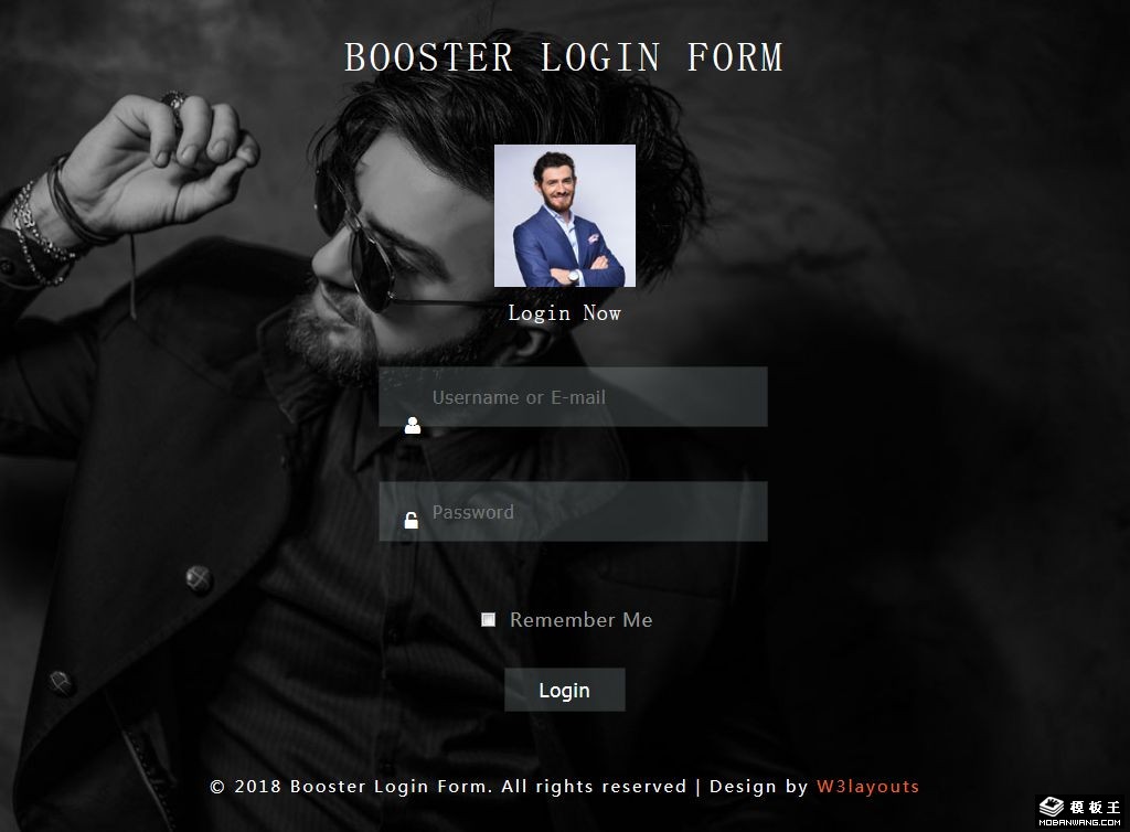 黑色人物登录框响应式网页模板。