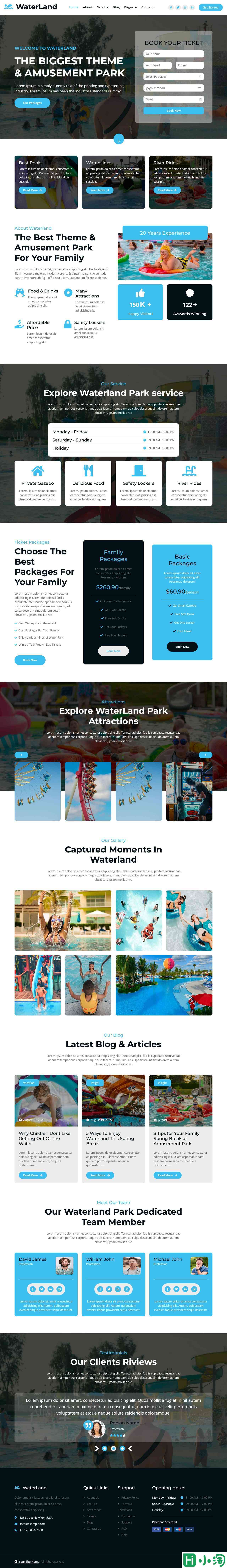 【水上游乐园主题网站模板】是一款设计精美、风格清新且独具匠心的免费HTML网站模板。它专为水上乐园、游乐园、游泳馆、水上运动中心、野生动物园、海滩酒吧及游泳课程等相关业务量身定制。凭借响应式布局、丰富的交互式元素以及强大的功能,该模板为访客打造了一种流畅而引人入胜的浏览体验。