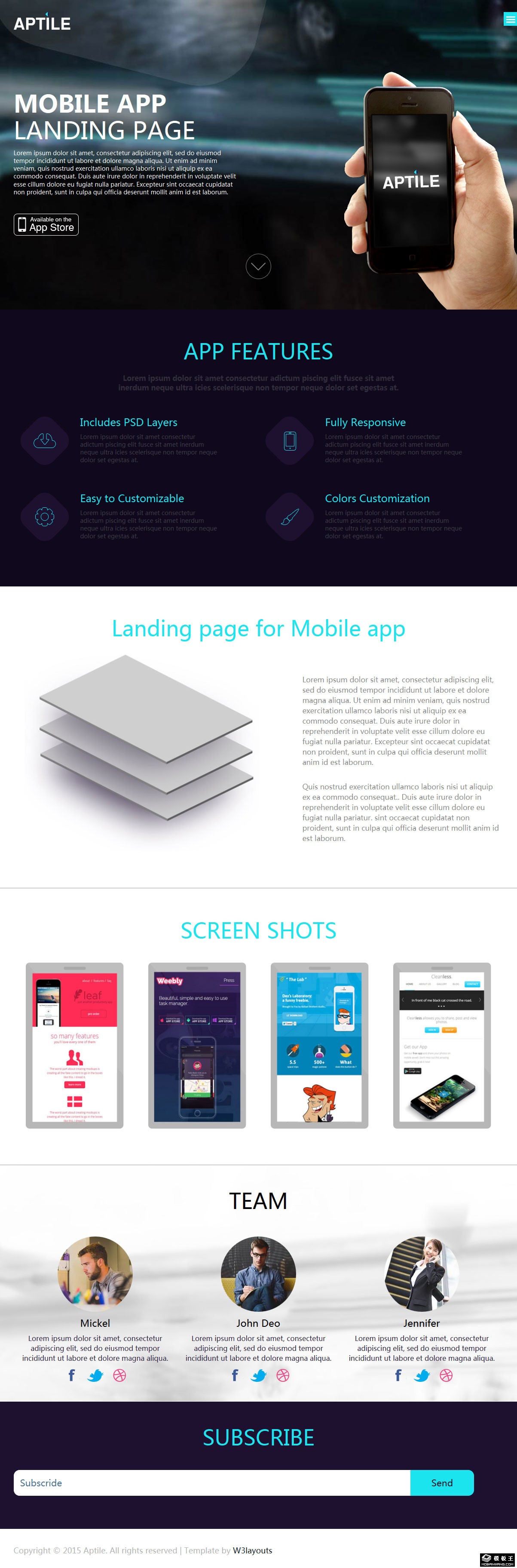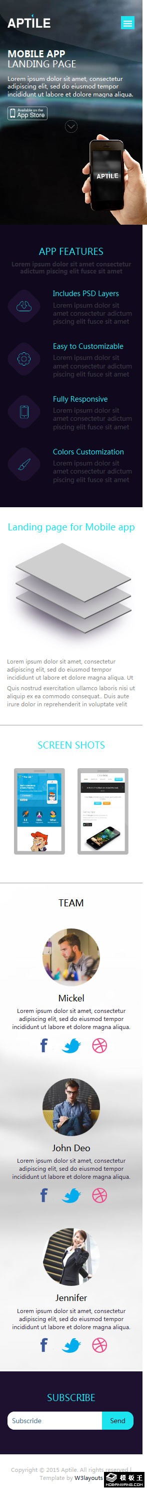 APP界面设计响应式网页模板。