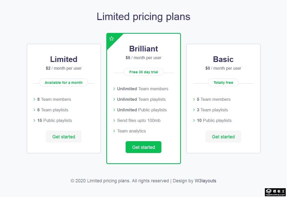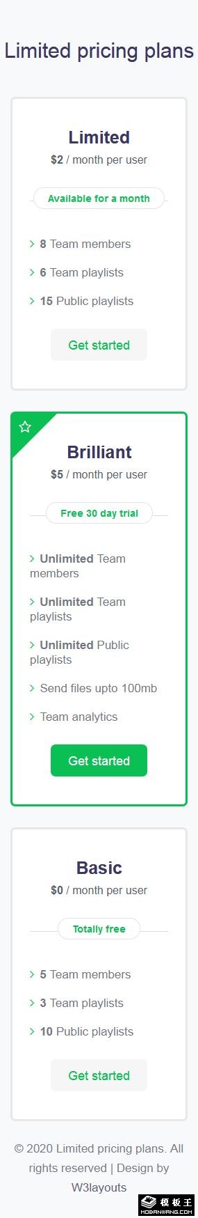 服务报价列表响应式网页模板。