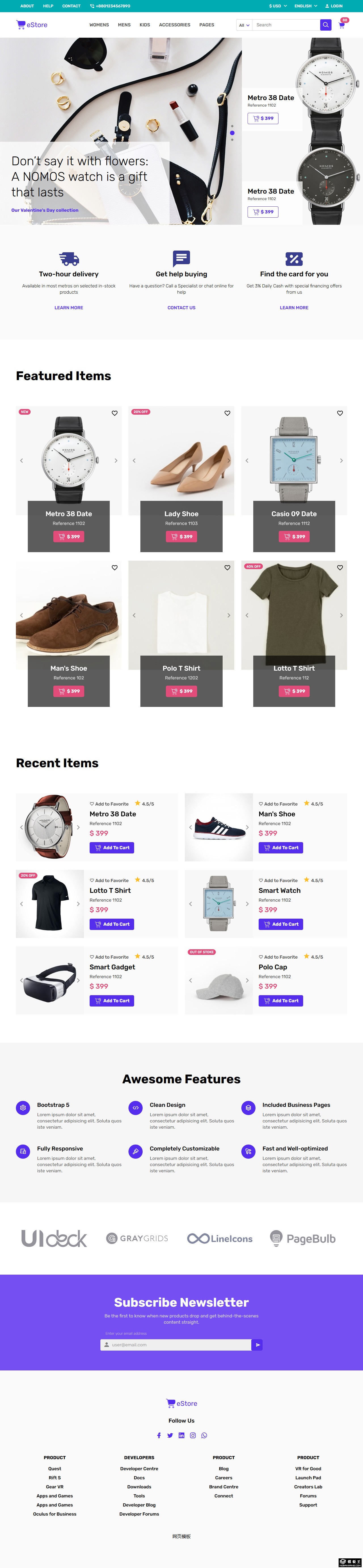 时尚特色产品商城网站模板。