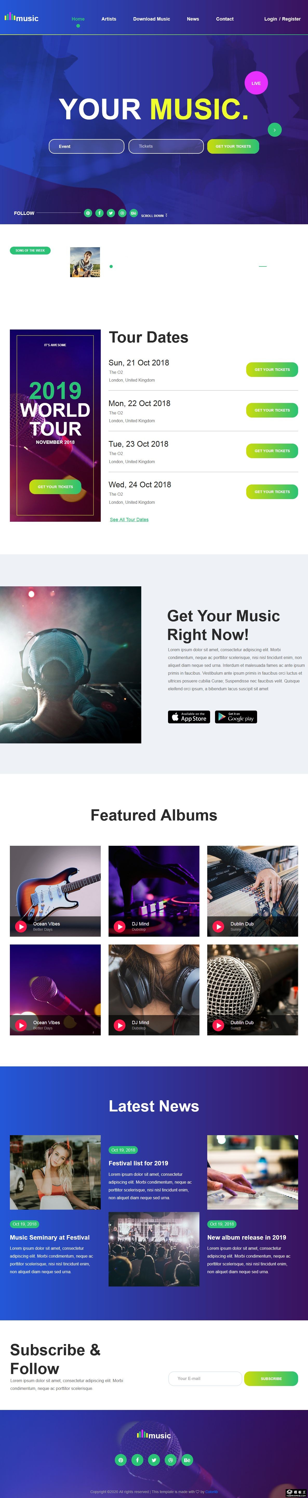 在线音乐发布响应式网站模板。