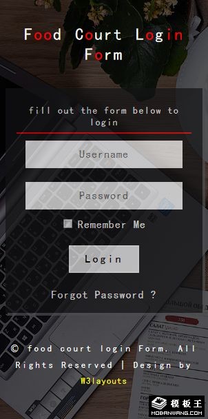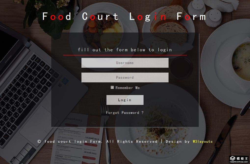 餐厅会员登录框响应式网页模板。
