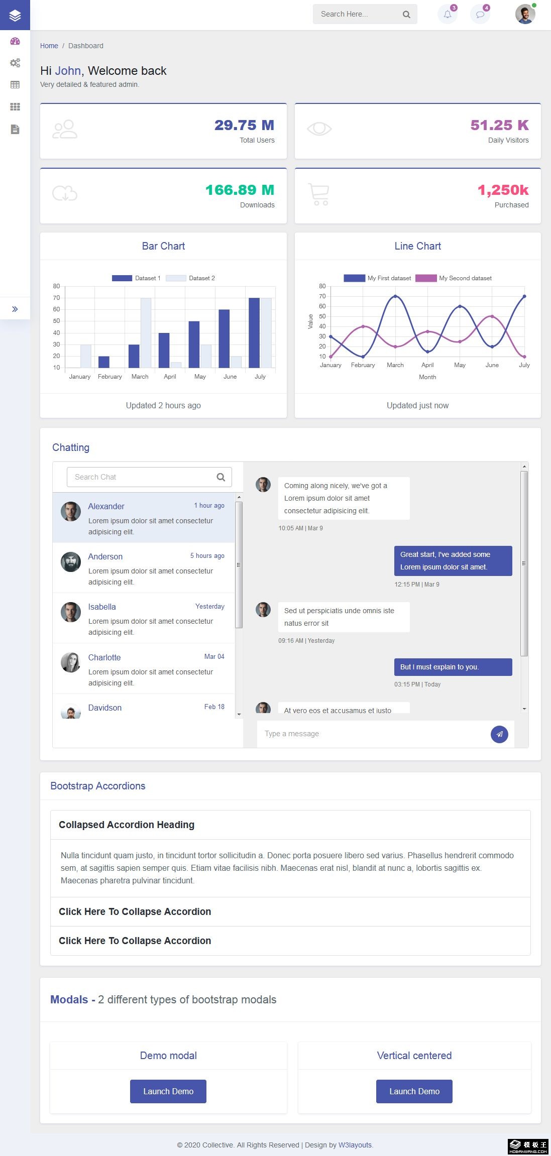 数据管理面板响应式网页模板。
