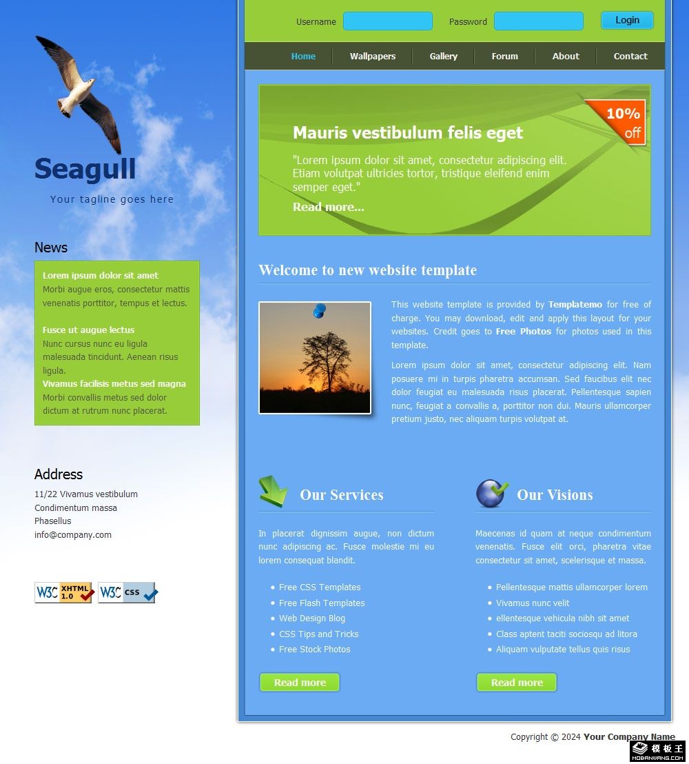蓝天海鸥信息介绍网页模板。