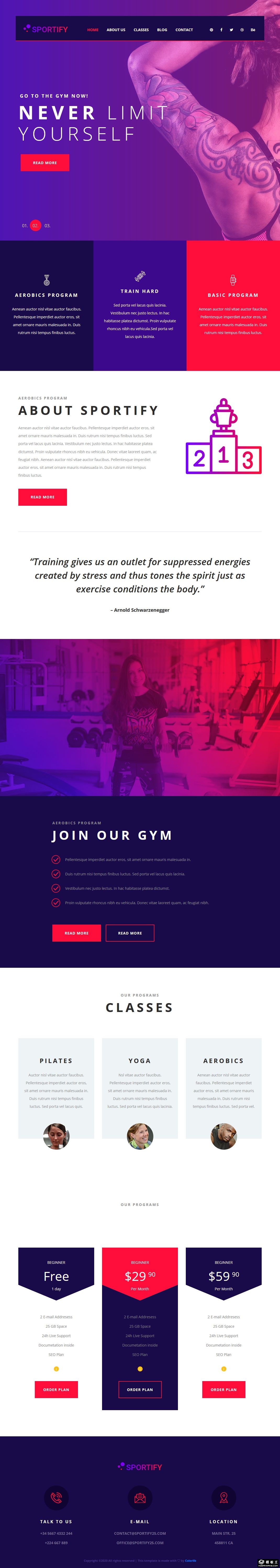 普拉提瑜伽运动响应式网页模板。