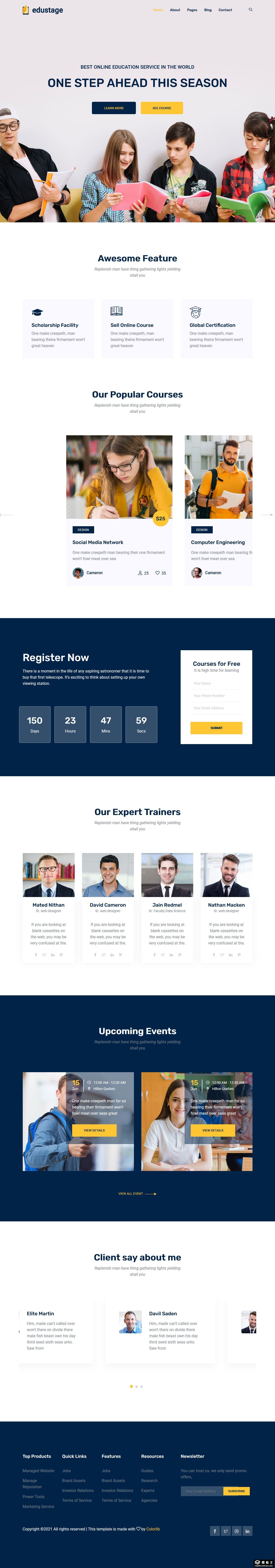 领先在线培训教育展示响应式网页模板。