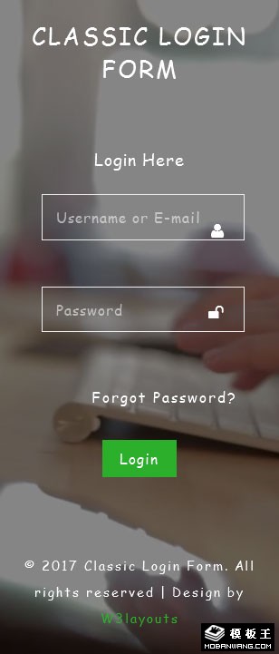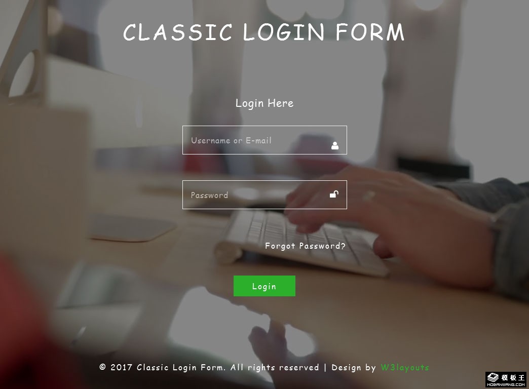 页面背景登录表单网页模板。