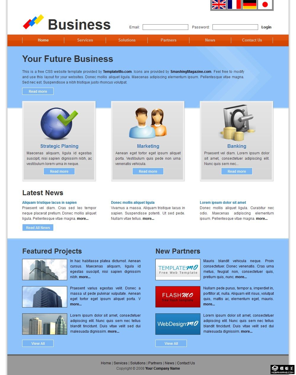 天蓝企业产品商务网页模板。