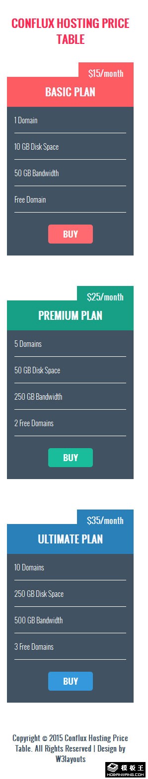 主机参数价格表响应式网页模板。