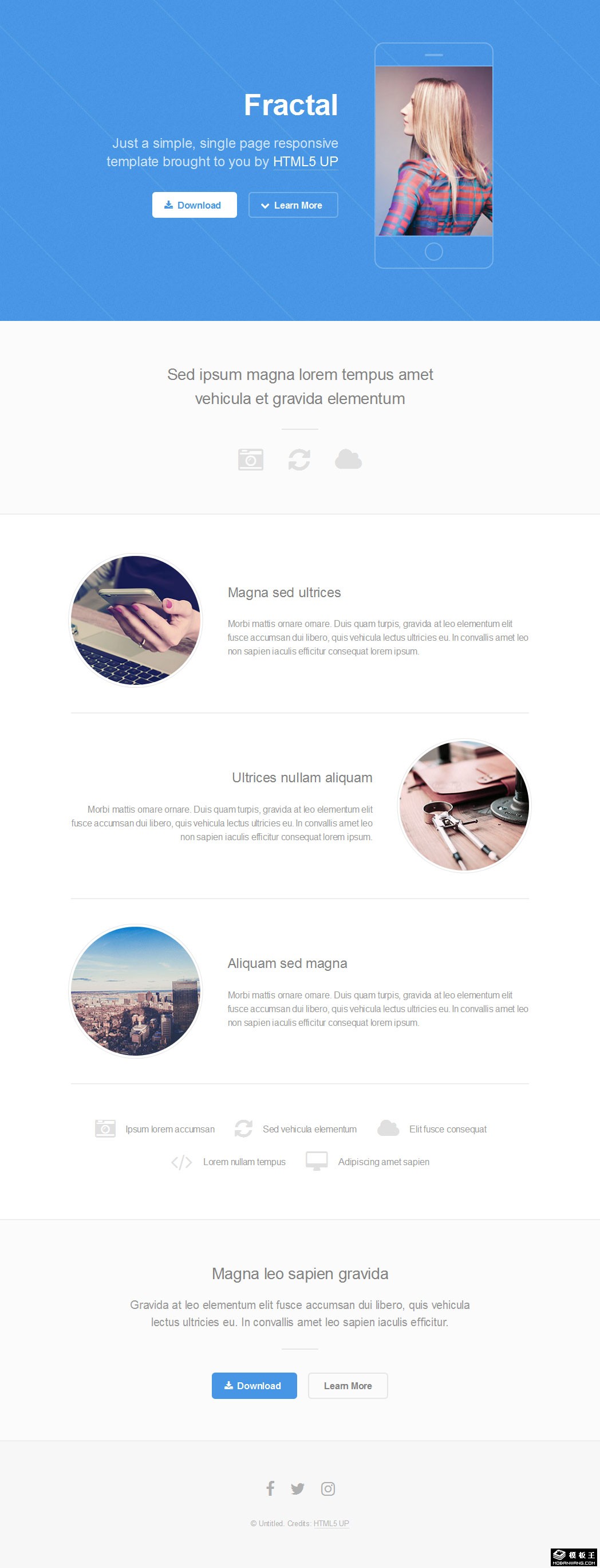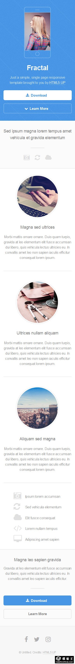蓝色软件介绍下载响应式网页模板。