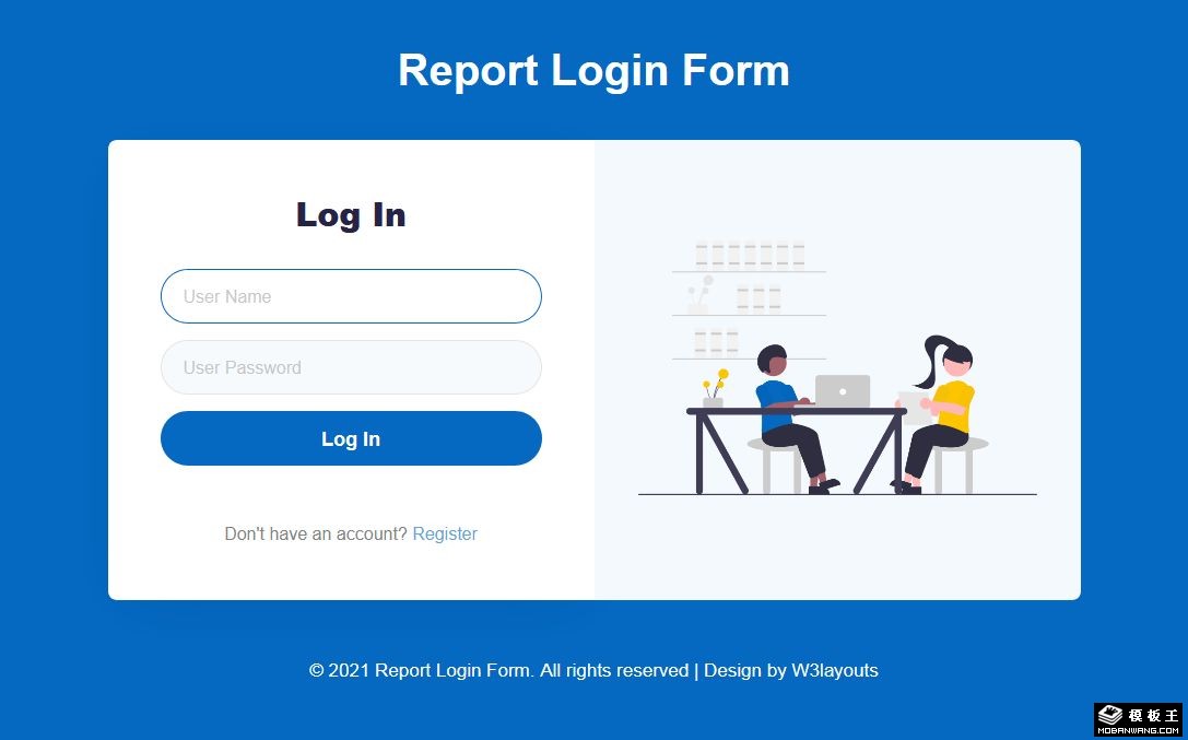 蓝色企业登录框响应式网页模板。