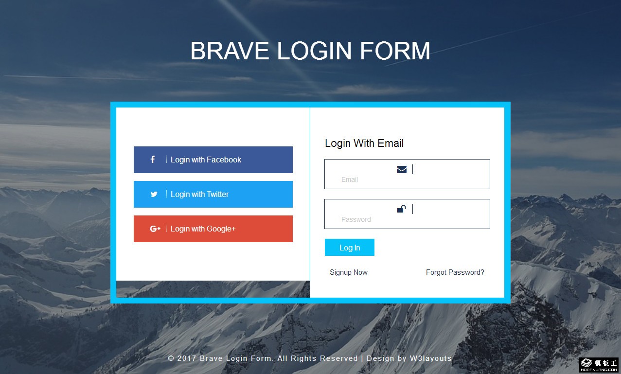雪山登录表单响应式网页模板。