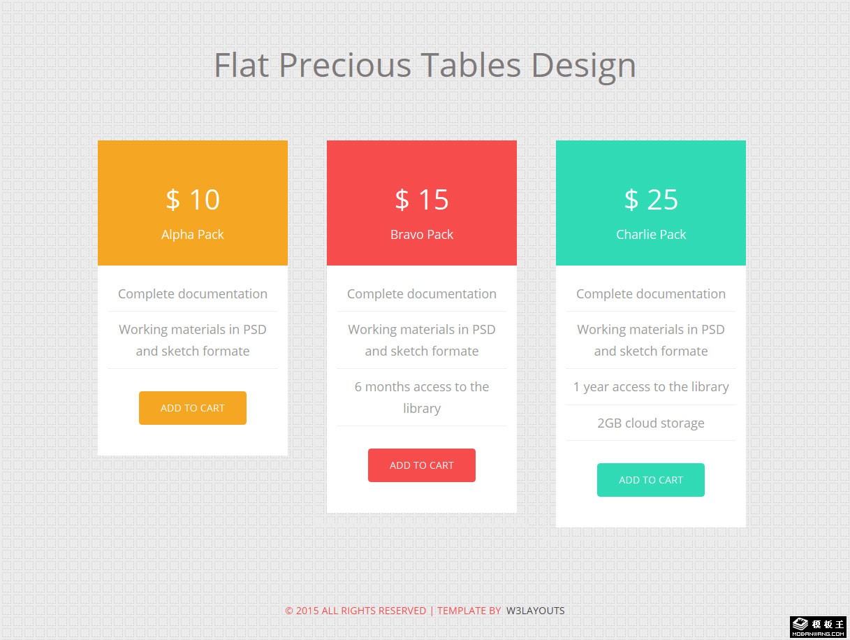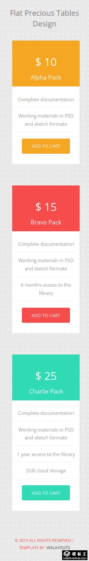 彩色价格列表响应式网页模板。