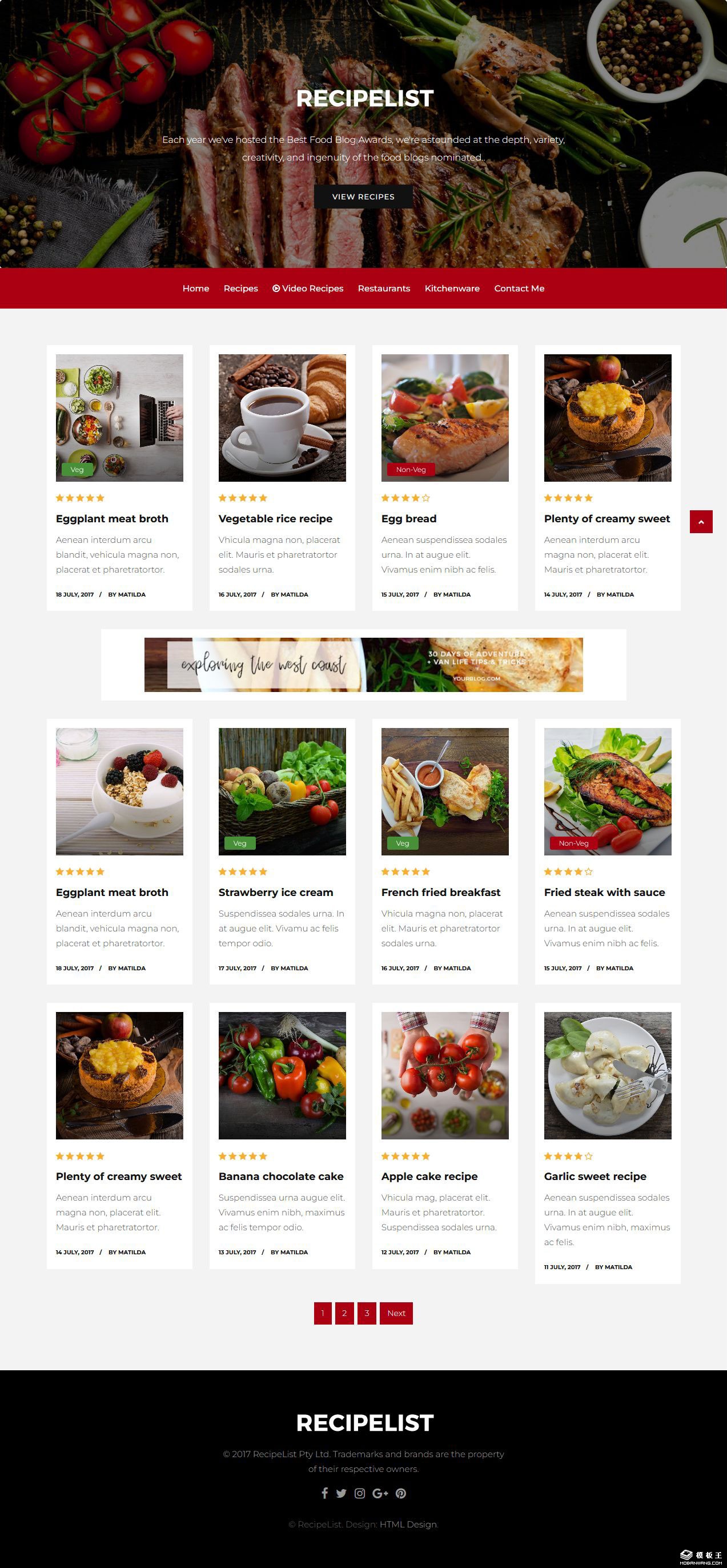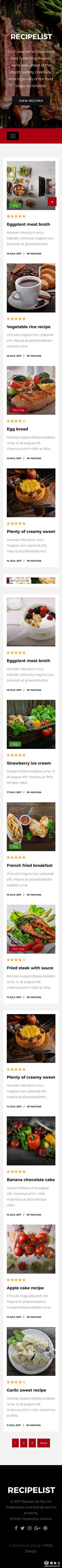 食谱列表展示响应式网页模板。