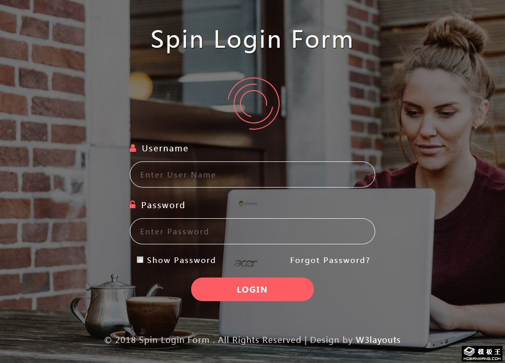 休闲商务登录框自适应网页模板。