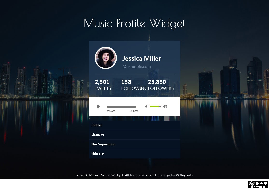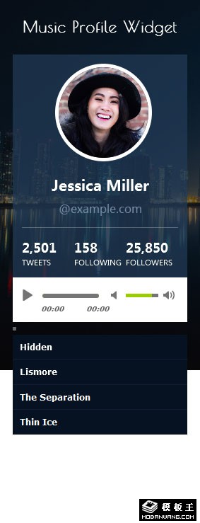 音乐播放器背景组件响应式网页模板。