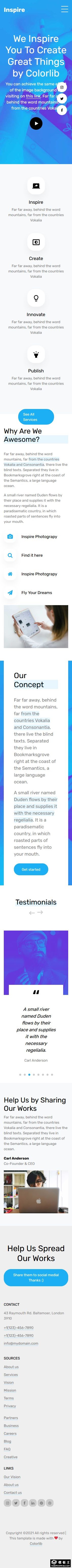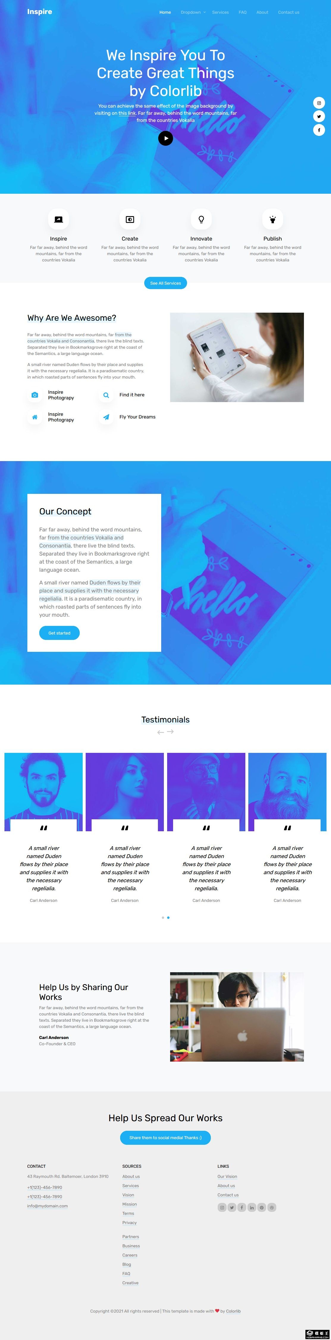 蓝色项目理念展示响应式网页模板。