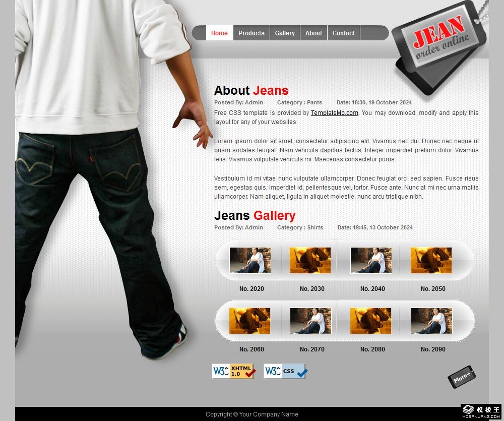时尚牛仔裤产品网页模板。