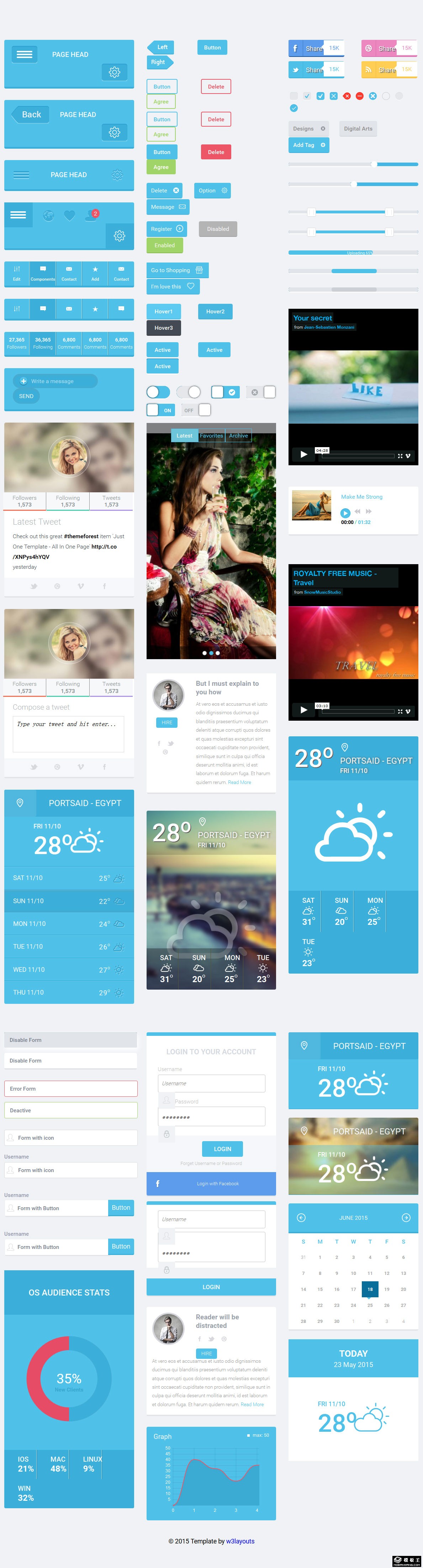 蓝色手机UIKIT组件响应式网页模板。