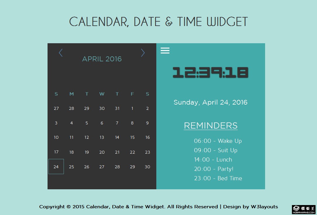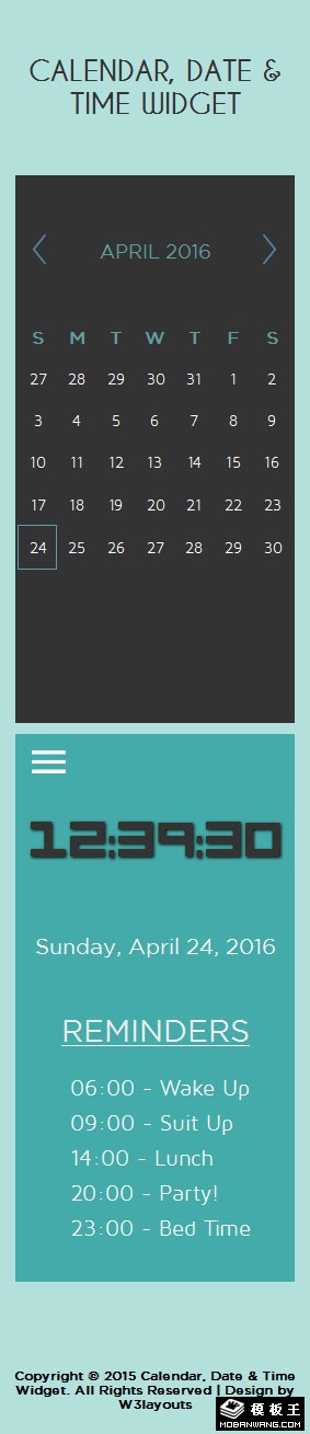 日历日期备忘录组件响应式网页模板。