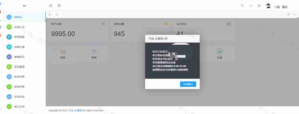 天迹•云通信SMS短信服务平台系统,短信发送系统,目前正常属于完美版,经过一系列修复现在程序已经可以完全使用。