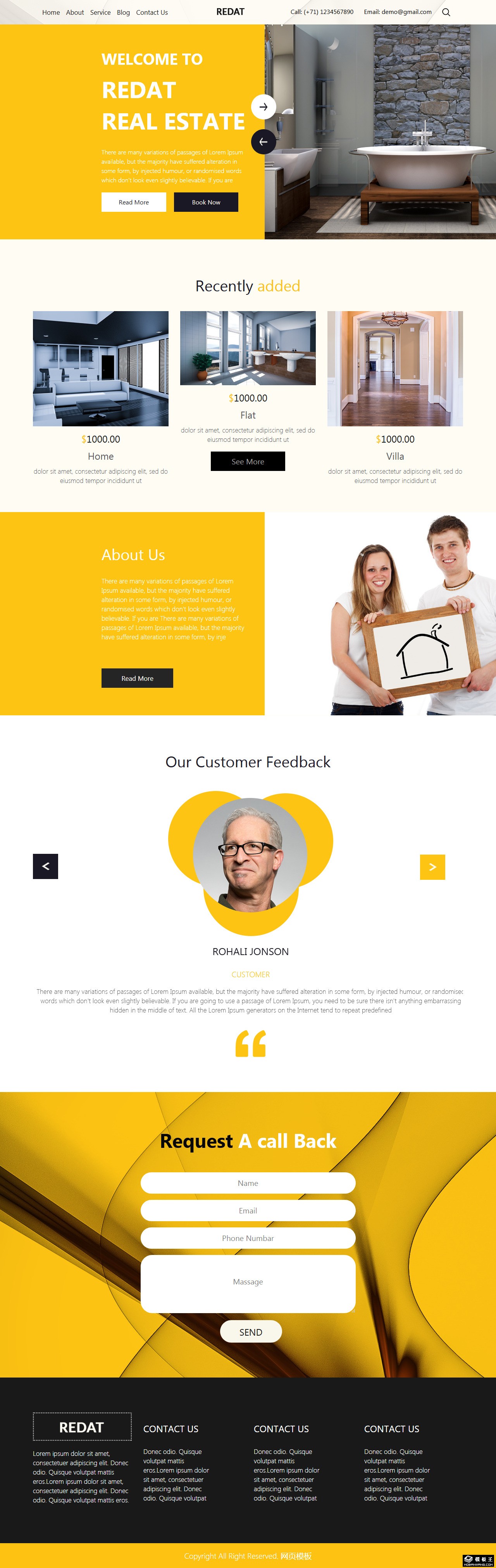黄色高端房产机构网站模板。
