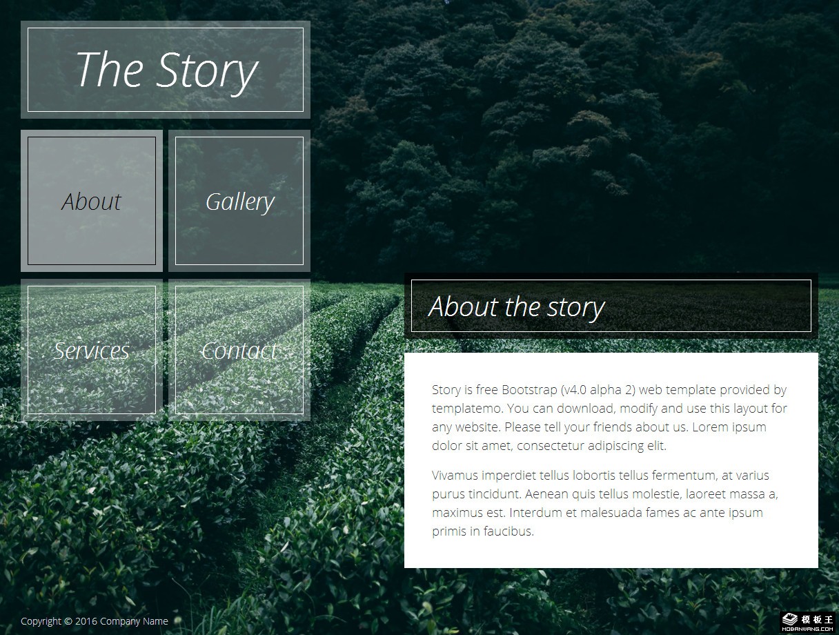 单页面背景信息响应式网页模板。