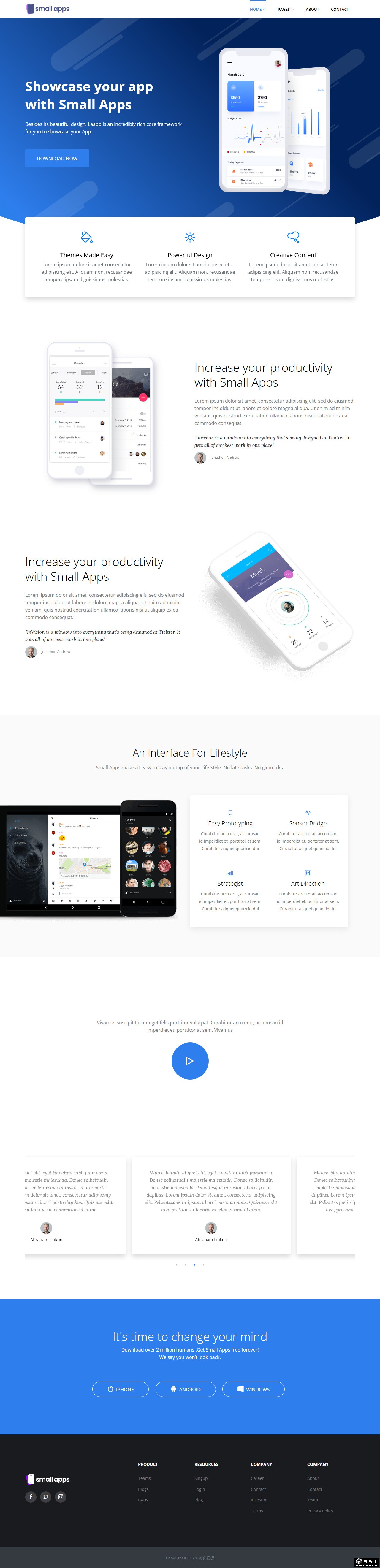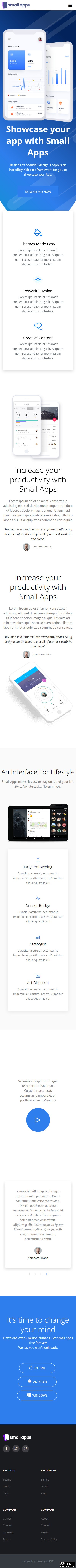 蓝色小型APP程序展示网站模板。