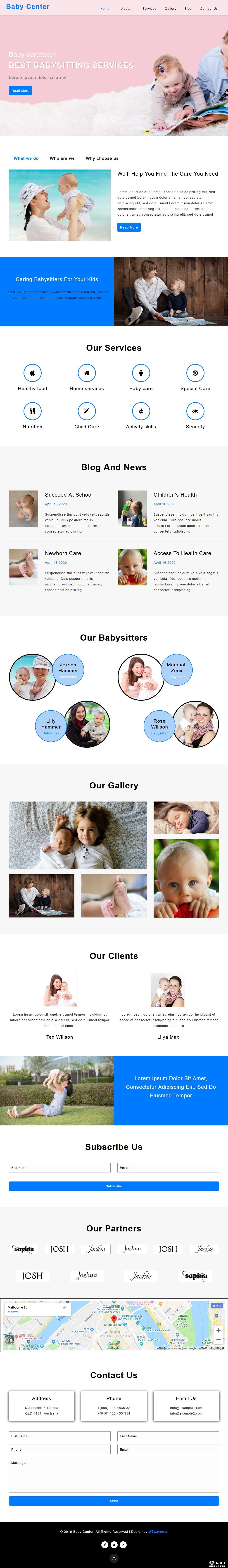 婴儿养护中心响应式网页模板。