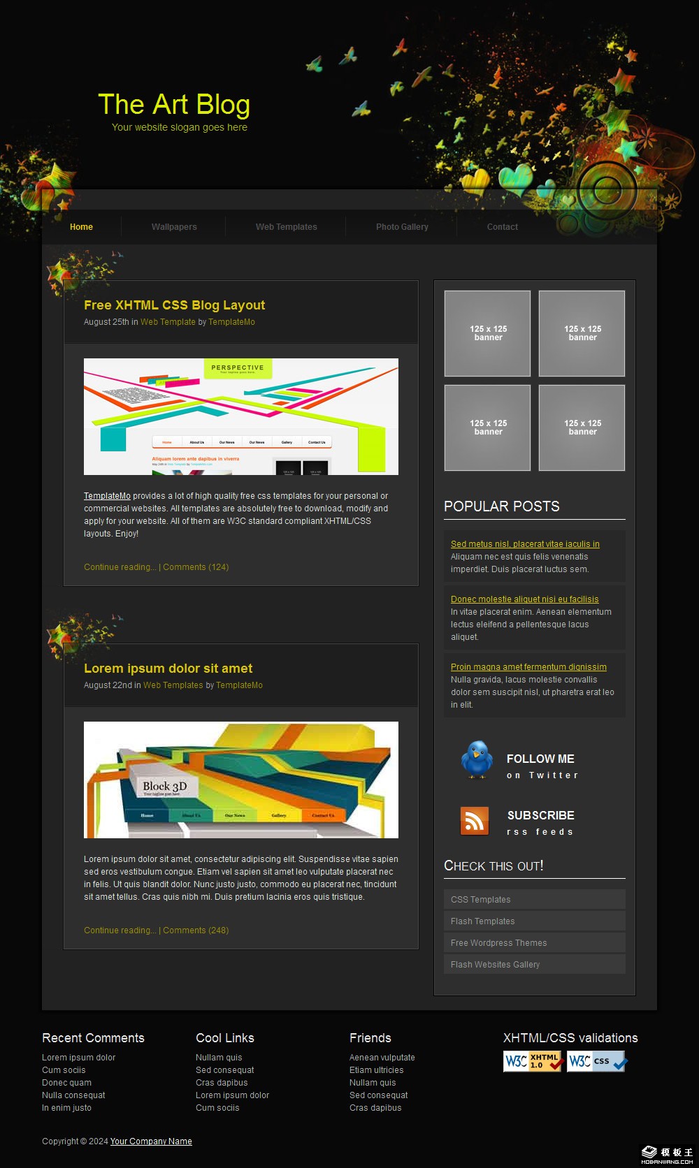 黑色抽象艺术BLOG网页模板。