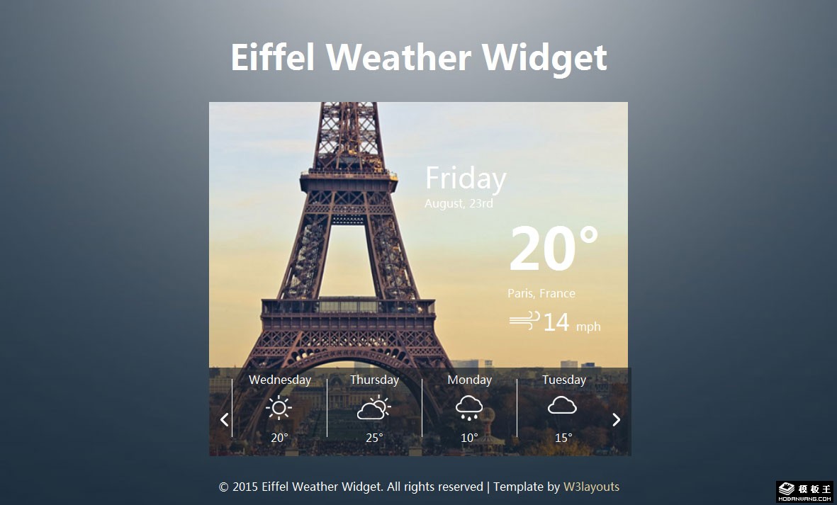 埃菲尔铁塔城市天气预报网页模板。