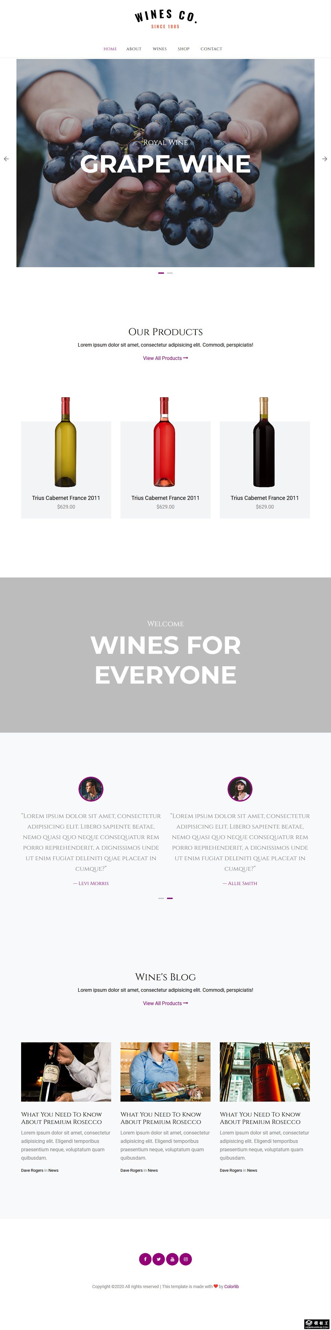 葡萄酒产品展示响应式网页模板。