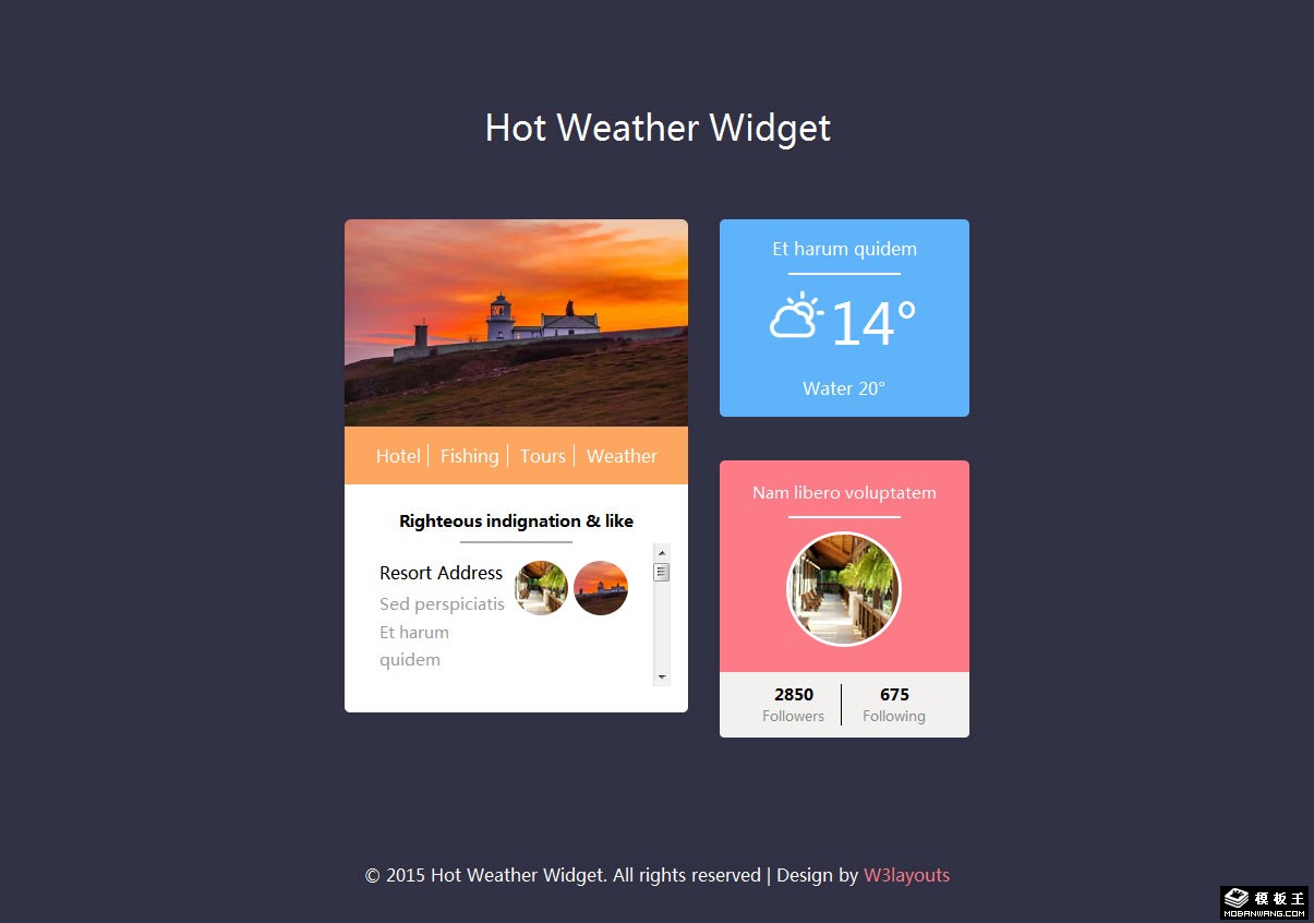 天气预报组件响应式网页模板。