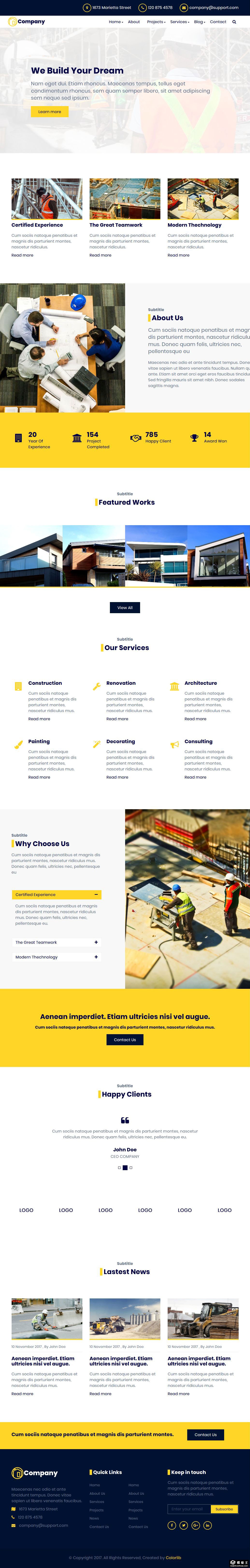 建筑施工项目展示响应式网页模板。