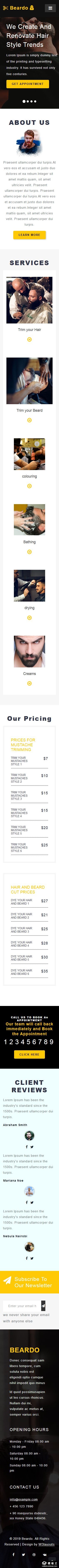 胡须发型设计响应式网站模板。
