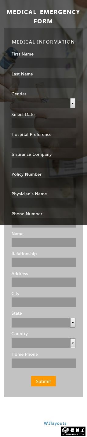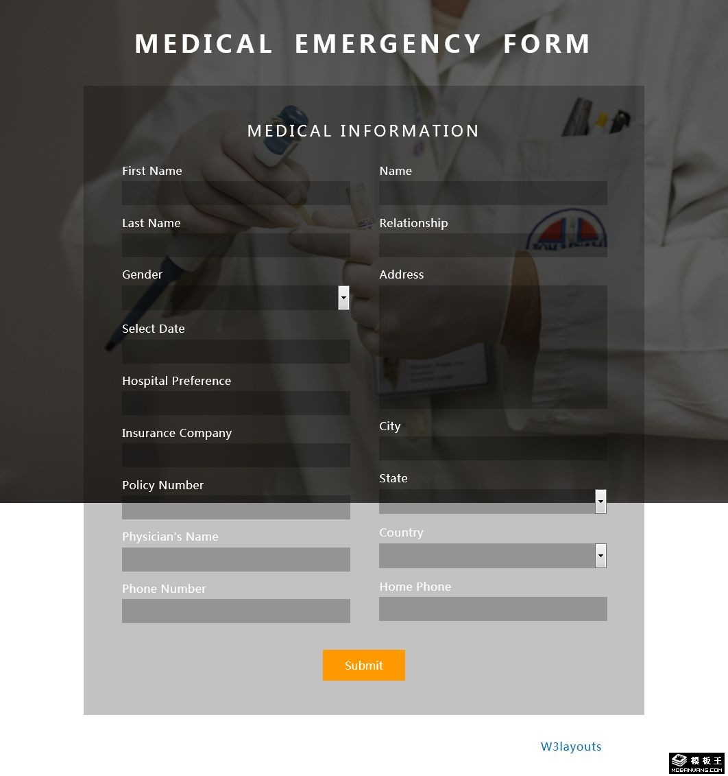 医疗急救表单响应式网页模板。
