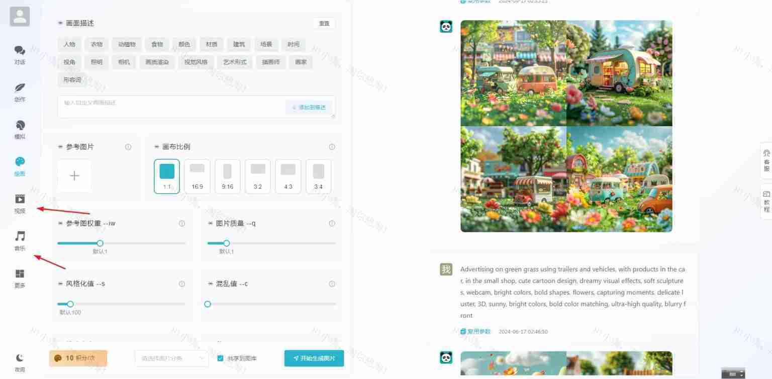 继续优化了数字先锋Midjourney接口,出图更快更稳定。H5端界面美化后更美观,