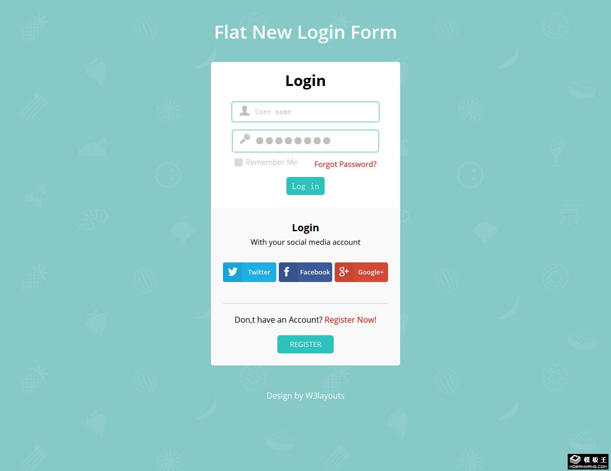 绿色登录表单网页模板。