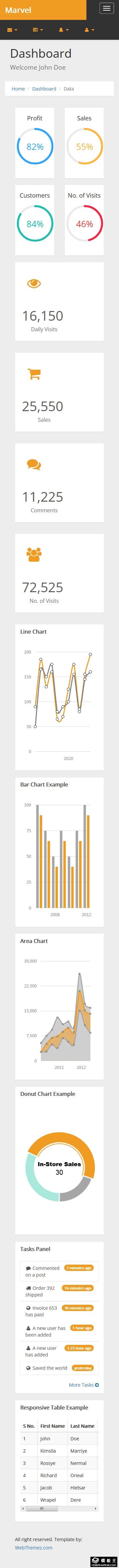 橙灰数据管理界面响应式网页模板。