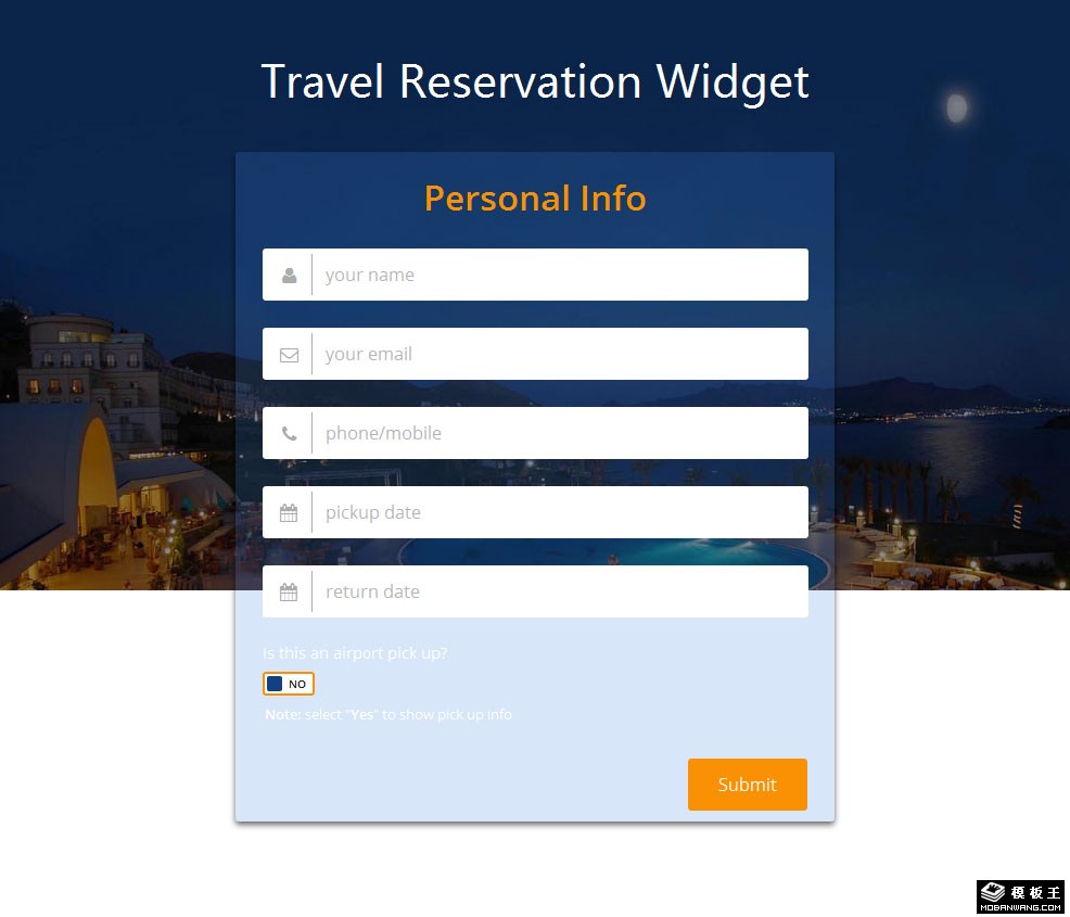 旅行预订组件响应式网页模板。